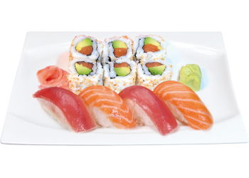 6 california saumon avocat 4 sushi saumon et thon, 6 raviolis ou 4 brochettes ou 4 nêms de poulet*